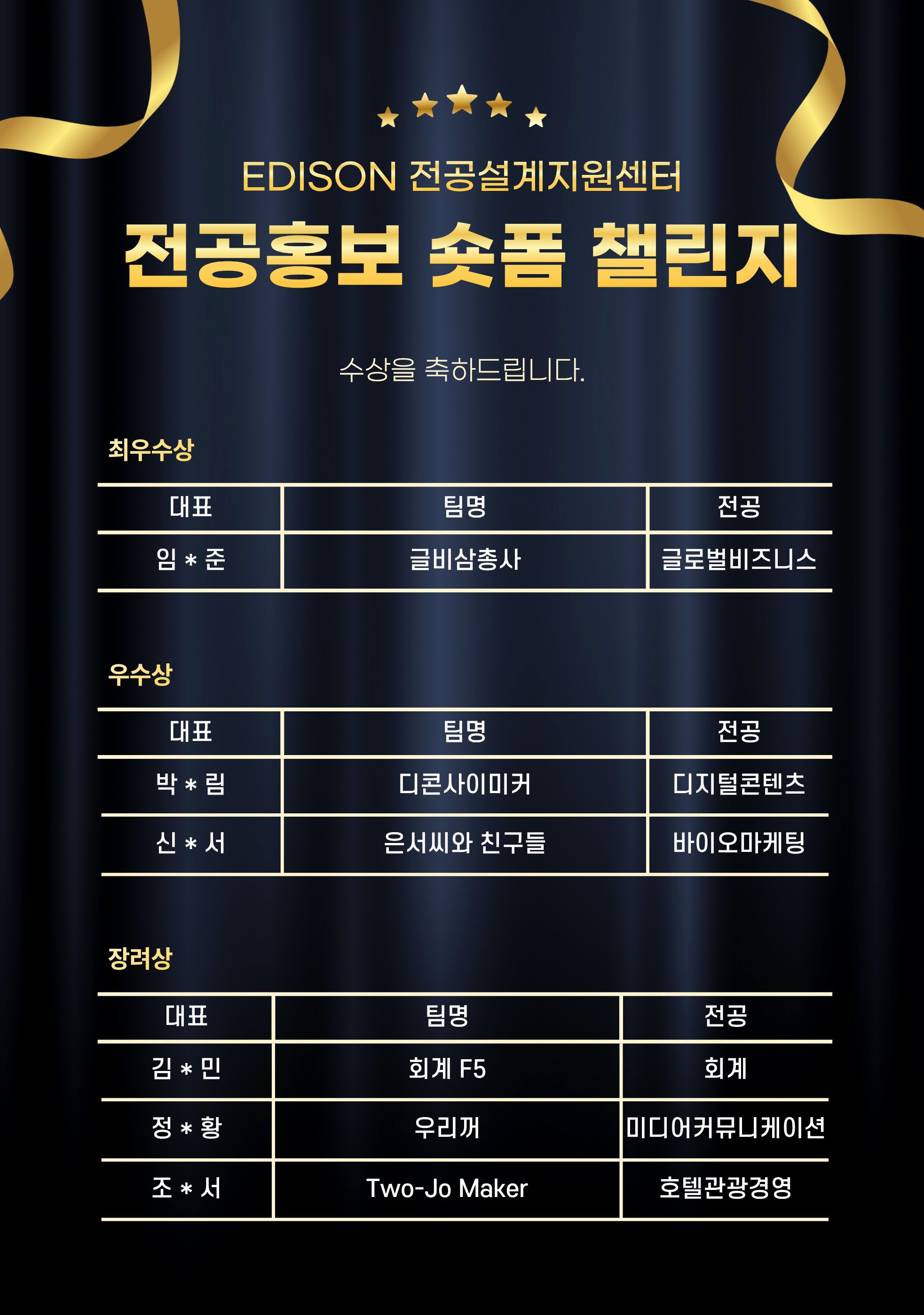 《 2025 EDISON 전공 전공홍보 숏폼 챌린지 수상자 명단 공표 》