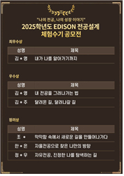 작성자 : 관리자 등록일 : 2026-01-20 조회수 : 11<<EDISON전공설계지원센터, 전공설계 수기 공모전 &
